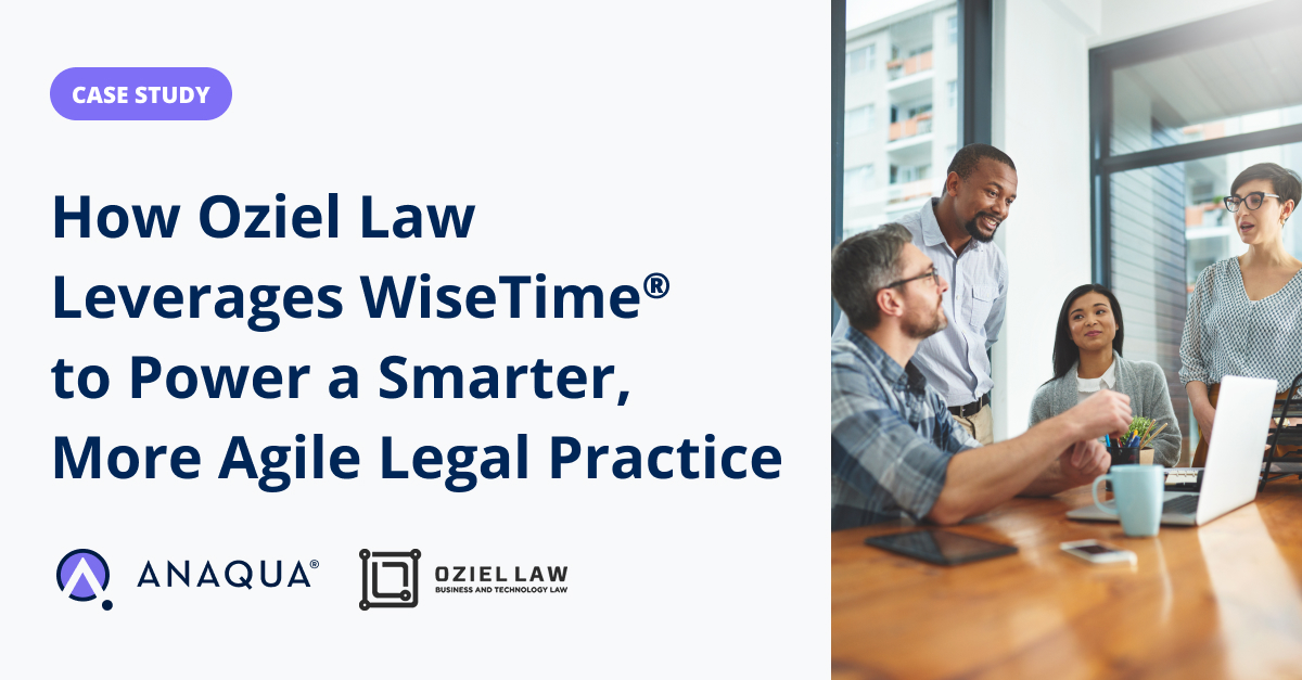 At Oziel Law, we’re passionate about building a legal practice that’s as innovative and agile as the startups we serve. We were recently invited to chat with Anaqua to share how we use WiseTime® to transform the way we track and manage time, giving us greater accuracy, efficiency, and insight into our work. By automating time capture and integrating seamlessly with our practice tools, we’ve been able to build a more efficient, scalable practice that mirrors the agility of our clients.