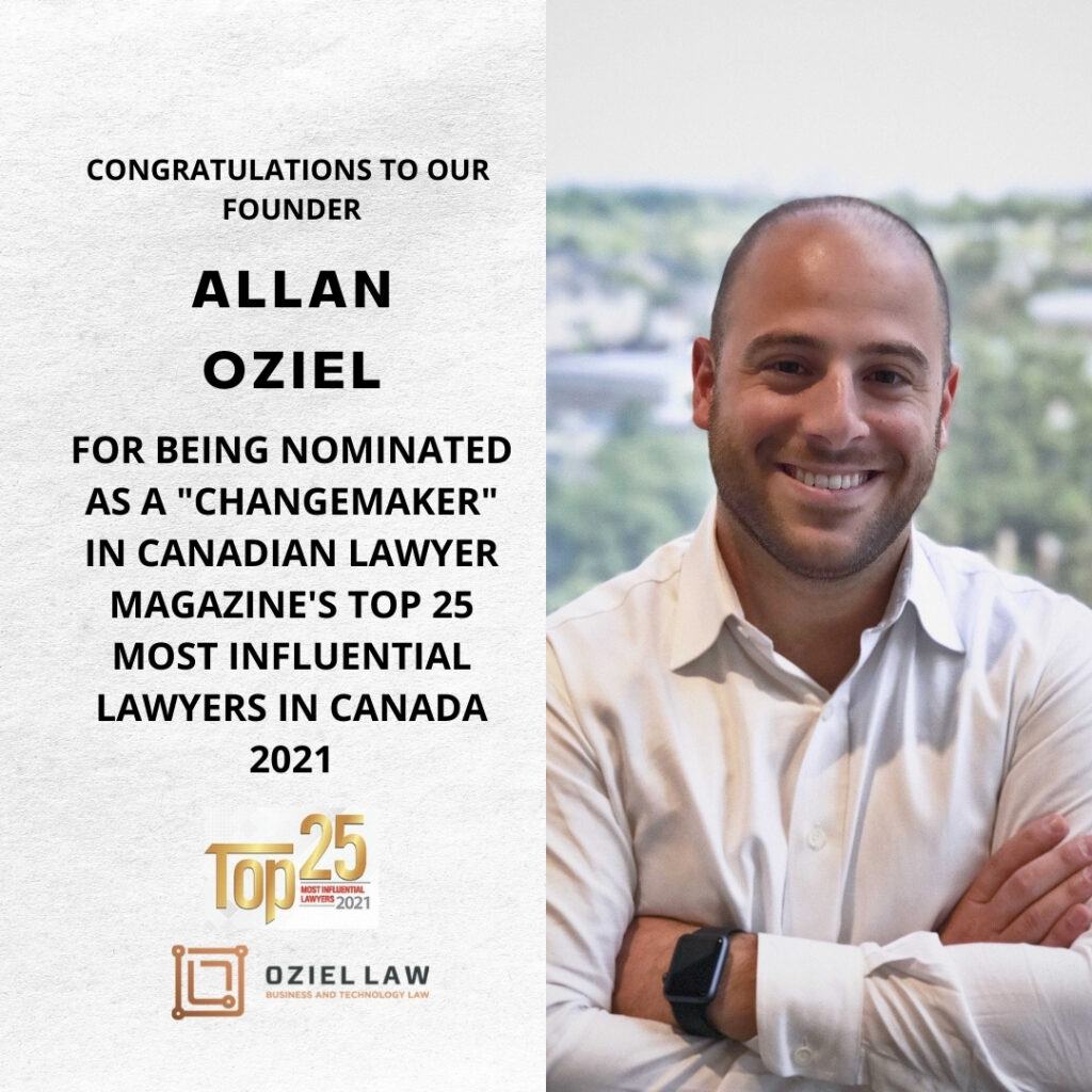 Allan Oziel is nominated as a “Changemaker” in the Canadian Lawyer Magazine’s Top 25 Most Influential Lawyers in Canada 2021